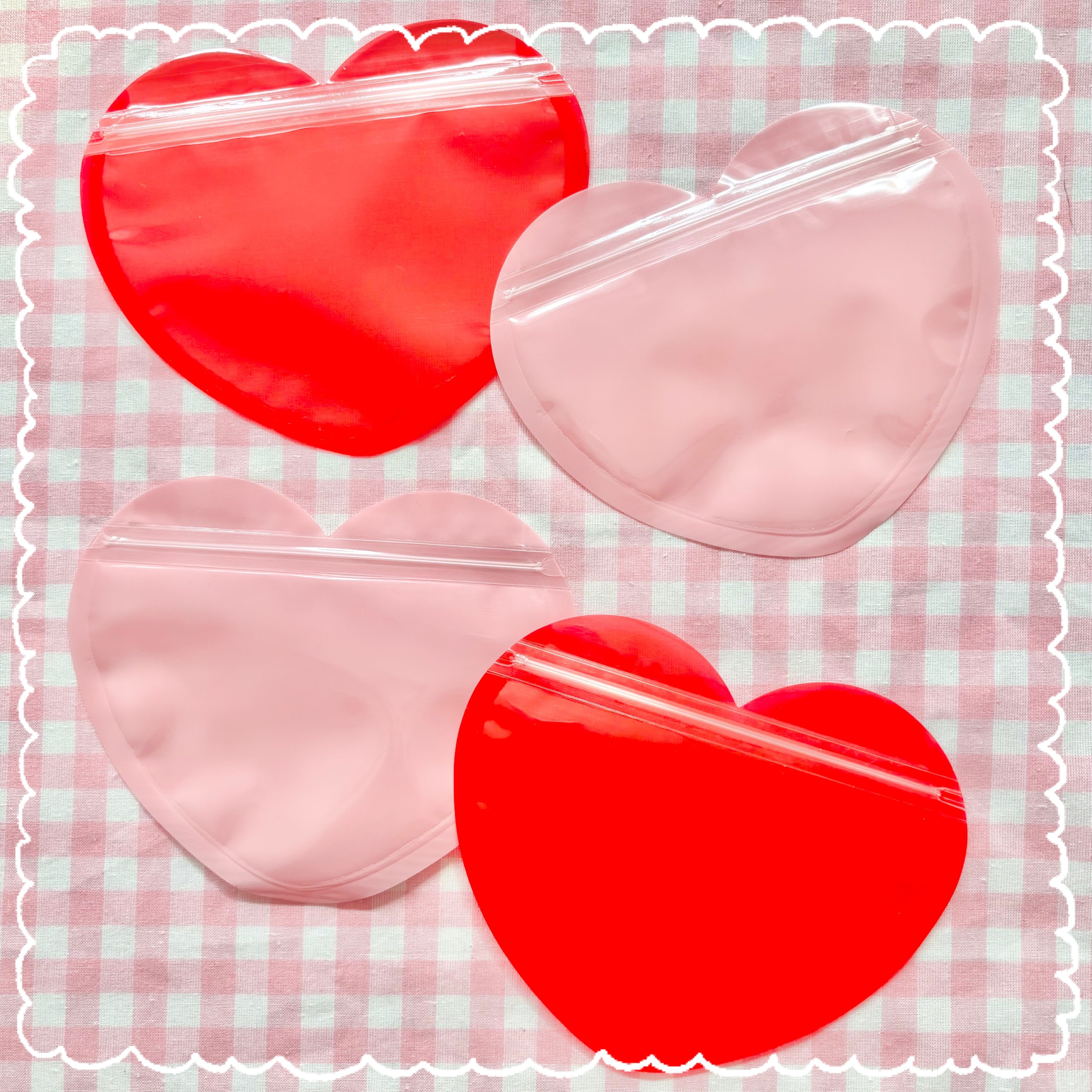 【4枚】ハート型 片面透明 チャック付き袋【2色】12.4cm×15cm