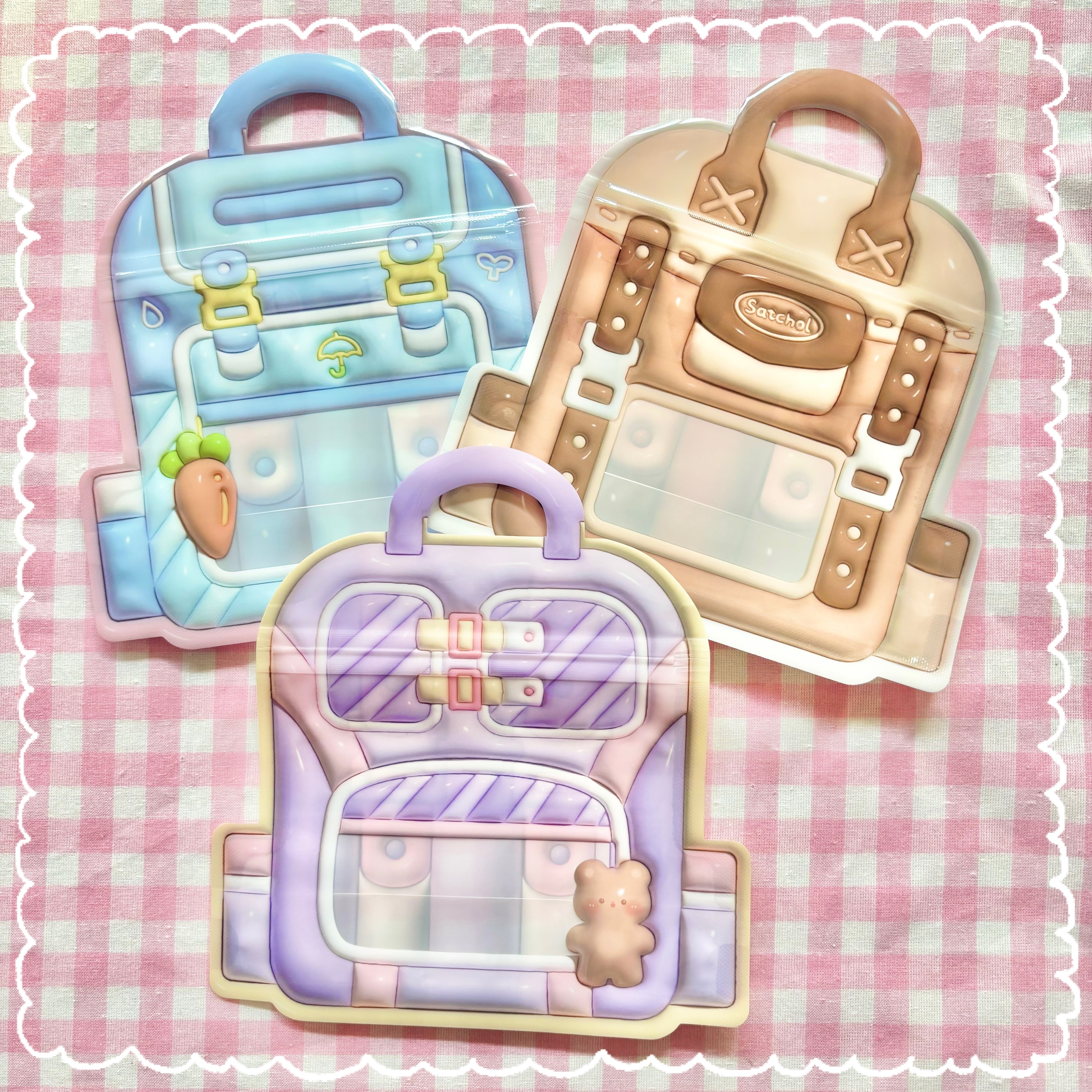 【3枚】ぷっくり 窓付き 裏柄あり リュック型 チャック付き袋【3種】17.1cm×16cm