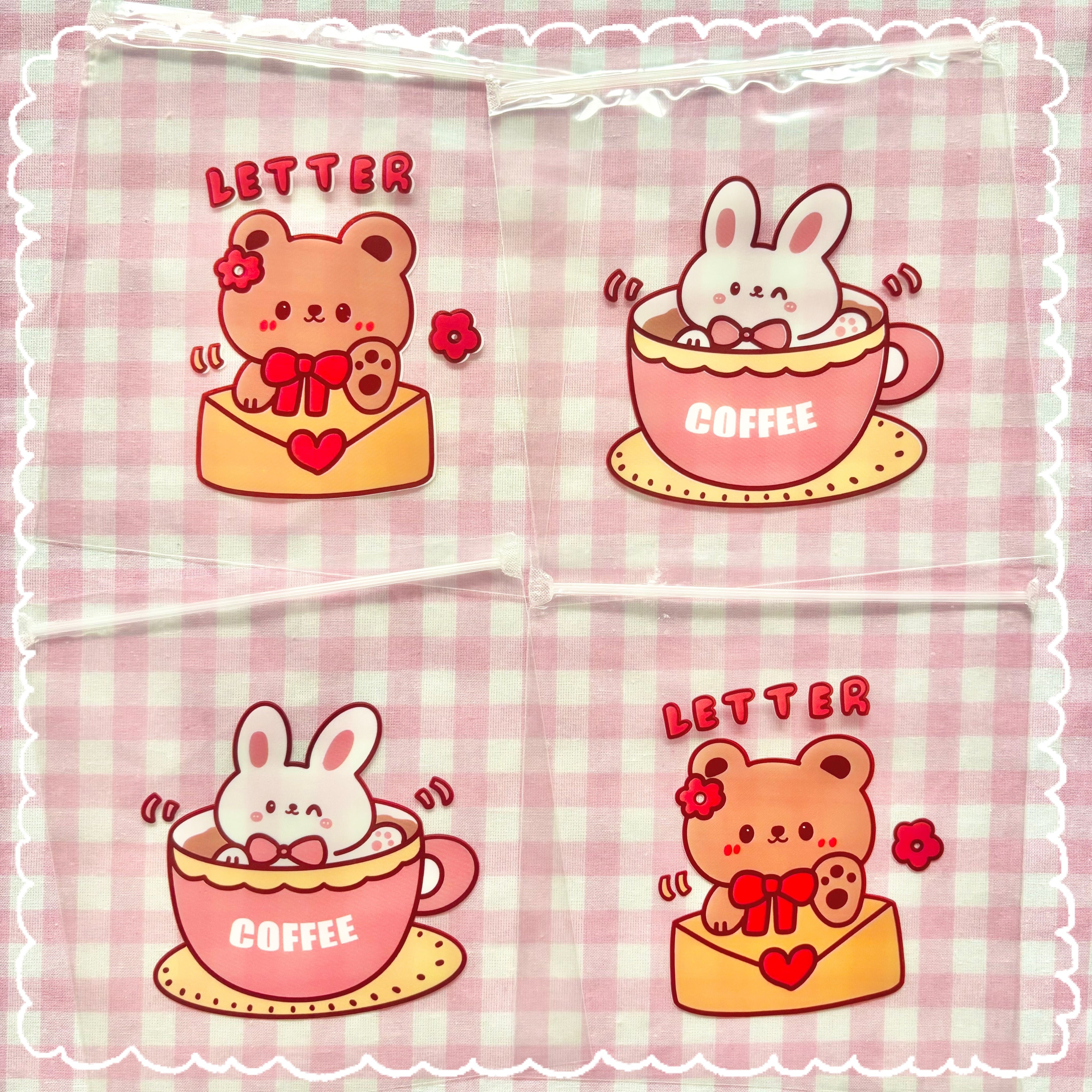 【4枚】くま うさぎ ゆるデザイン ソフトチャック付き袋【2種】15.7cm×14.7cm