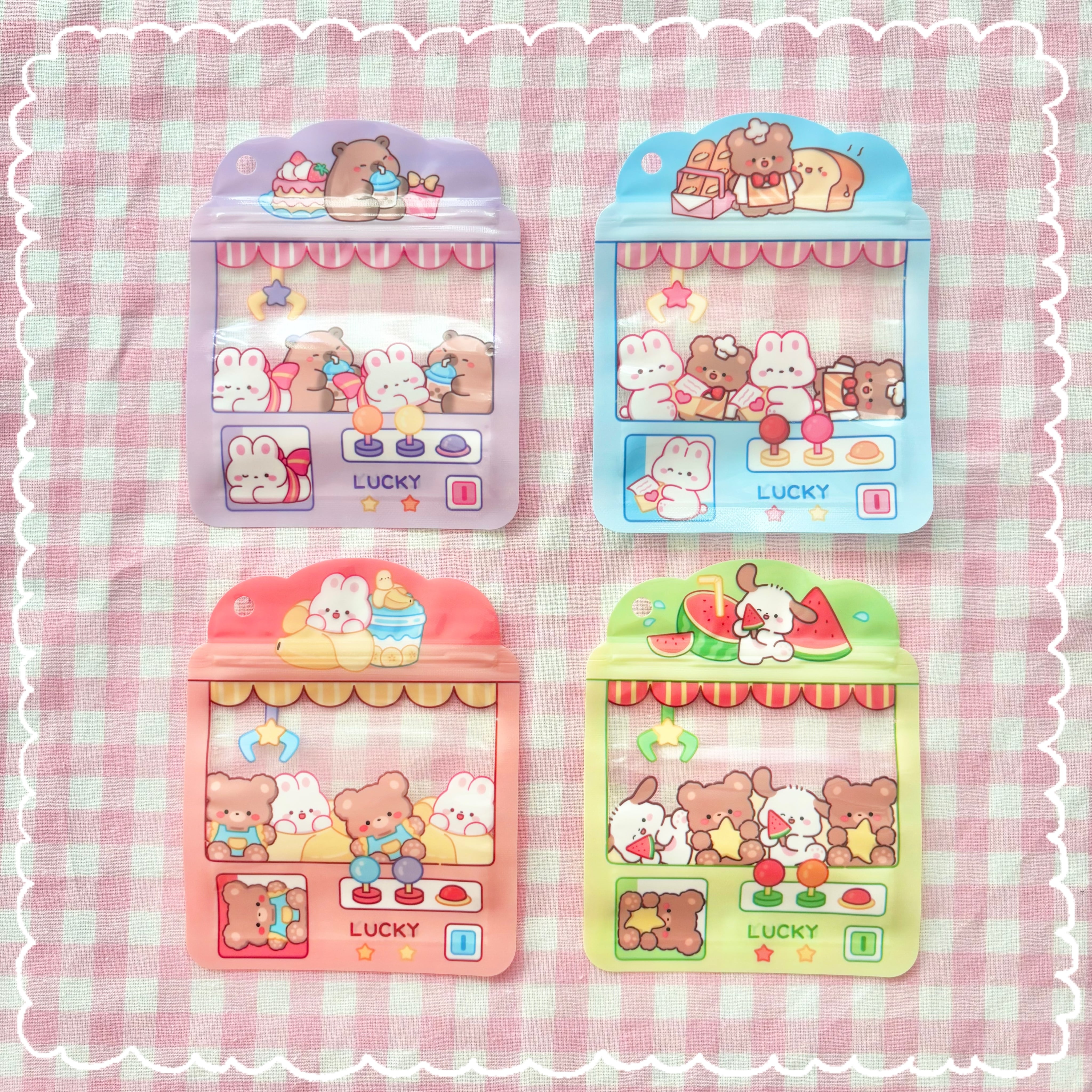 【4枚】アニマル クレーンゲーム 窓&チャーム穴付き 裏柄あり チャック付き袋【4種】12.5cm×10cm