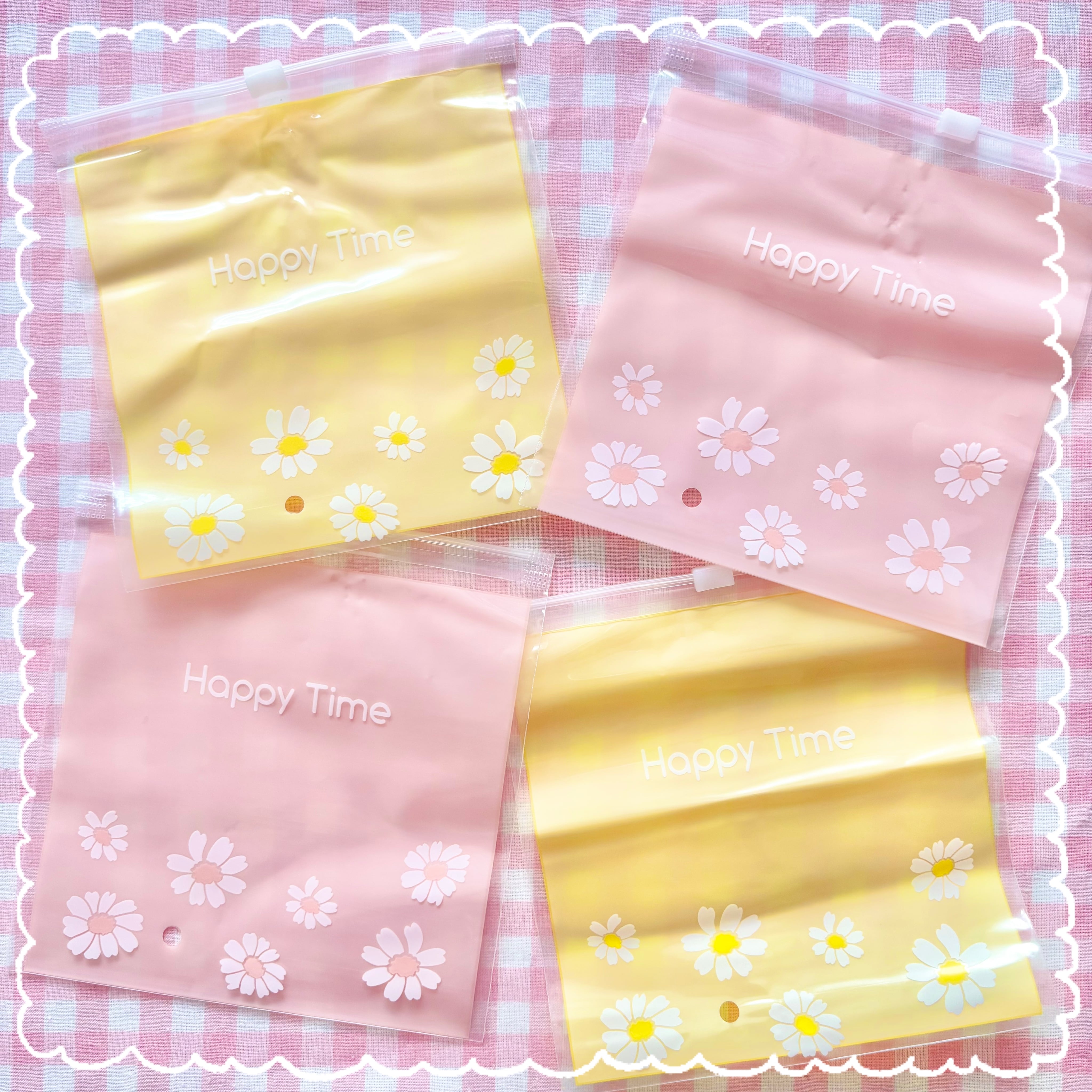 【4枚】 白いお花 ピンク イエロー ソフトチャック付き袋【2色】15.1cm×14.6cm