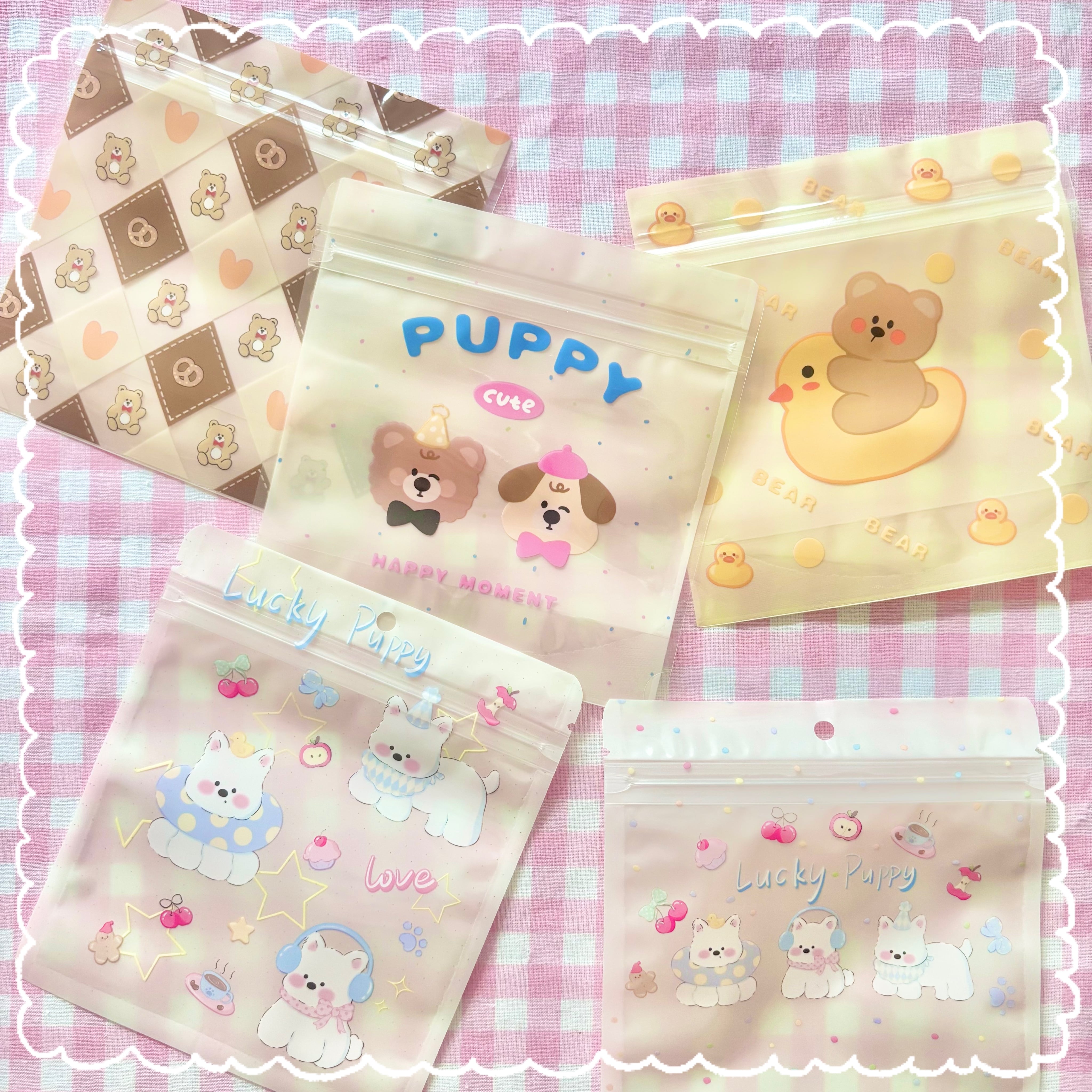 【5枚】 スクエア くま わんこ チャック付き袋【5種】13〜15cm